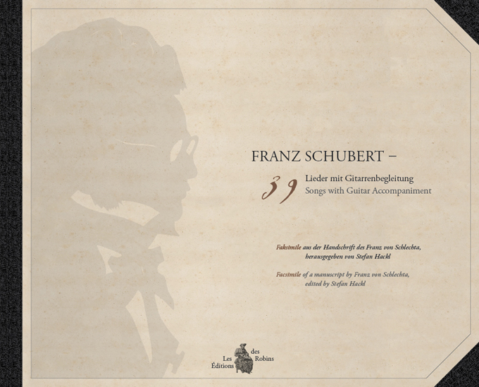 Although there are some depictions of Schubert with a guitar in hand and his connection with the guitar still much debated*, what is undeniable is how well his songs work when they are transcribed for the guitar. One collection of transcriptions made by his contemporary, Franz von Schlechta (1796–1875), has now been published in a limited edition, high-quality facsimile reproduction by Les Éditions des Robins.